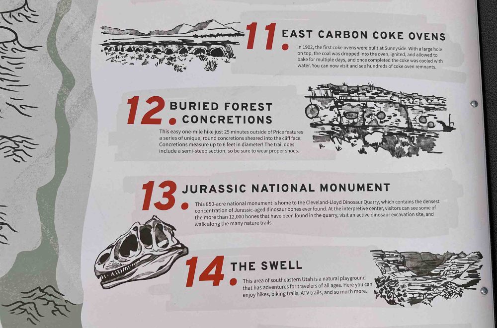 ヘルパーという町とその周辺は、先史時代の遺跡がたくさんある場所です。ペトログリフや恐竜の骨など、多く発掘されています。 The town of Helper and the surrounding area are home to many prehistoric ruins. Many petroglyphs and dinosaur bones have been excavated.