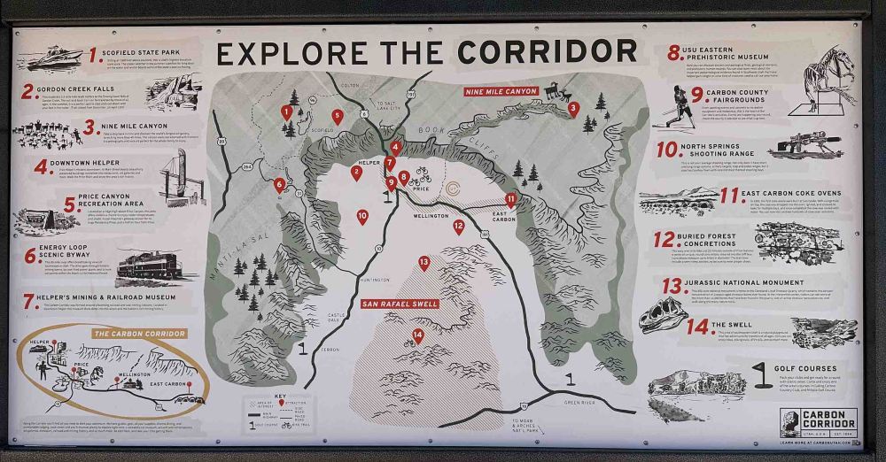 さらに興味を引いたのが「恐竜ダイアモンド」と呼ばれる巨大な地帯です。名前の由来は大きくダイヤモンドの形を描くようにハイウェーがこの地帯を囲んでいるところから来たらしいです。そしてこのヘルパーもそのダイヤモンドの西側に位置しています。 Of further interest is a huge zone called the “Dinosaur Diamond”. The name is said to come from the fact that a highway surrounds this zone in the shape of a large diamond. And Helper is also located on the west side of the diamond.