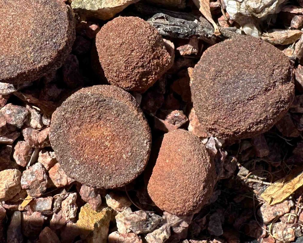 私が見たことのあるコンクリーションはモキボールと言われ、たかだか1インチから5インチほどの丸いボールです。 昔、家の近くを歩いていた時に見つけたものは、1インチぐらい。半分に割れたボールを観察すると、中心は砂岩が固まったもので、その周りに鉄分で覆われているのがわかります。 The concretions I have seen are called Moqui Balls, which are round balls that are a mere 1“ to 5” in diameter. The one I found while walking near my house a long time ago was about 1 inch. If you observe the ball broken in half, you can see that the center is made of hardened sandstone and is covered with iron around it.