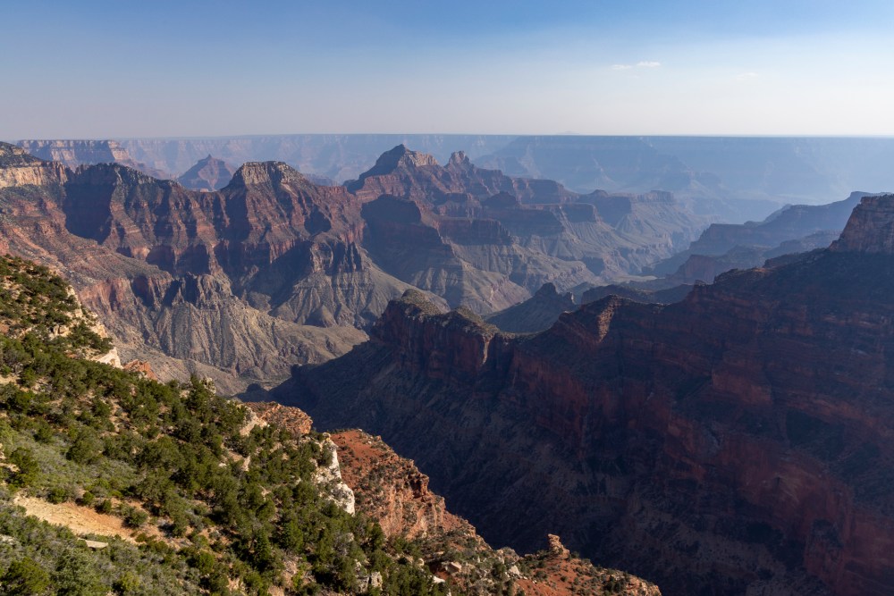 一方、北側から渓谷を見ると、確かに影がたくさんあって、地層の変化が見えにくいです。渓谷までのアプローチがとんでもなく長く、疲れた頃に終点ロッジに到着します。でも、そんな短所が長所で趣があります。森林保護地区に咲くワイルドフラワーはワシントン州のオリンピック国立公園を思い起こさせてくれます。観光客の数が少ない事も落ち着ける要因でもあります。 On the other hand, looking at the canyon from the north, there are indeed many shadows and it is difficult to see the changes in the formations. The approach to the canyon is ridiculously long, and you arrive at the final lodge when you are tired. But such shortcomings are quaint in their advantages. The wildflowers in the forest preserve remind me of Olympic National Park in Washington State. The small number of tourists is also a calming factor.