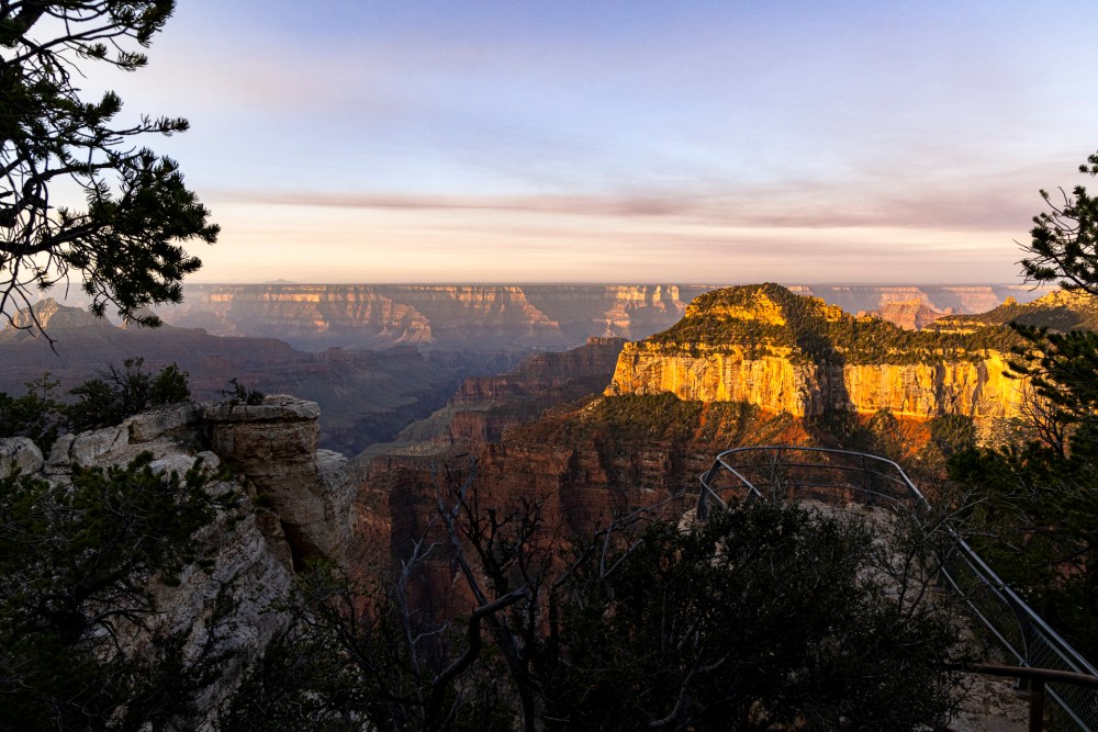 今回は、北側にあるログキャビンの予約ができたので、ゴールデンアワー(日の出と日の入りの前後1時間ぐらいのこと)の写真を期待しました。 This time, I was able to reserve a log cabin on the north rim, so I expected to take pictures during the golden hour (about an hour before and after sunrise and sunset).