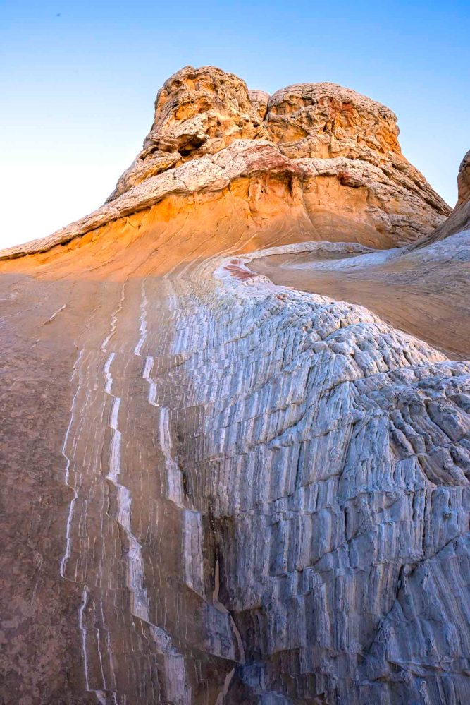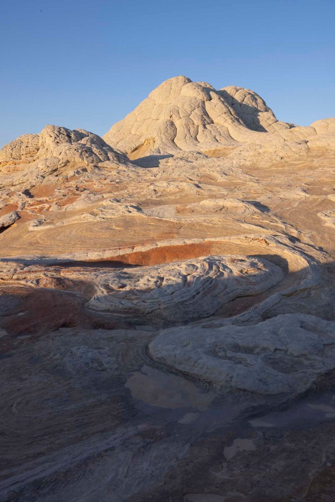 ナバホ砂岩でできているホワイトポケットはまるで大海の荒波でした。 White Pocket, made of Navajo sandstone, has many forms that look like the rough waves of the ocean.