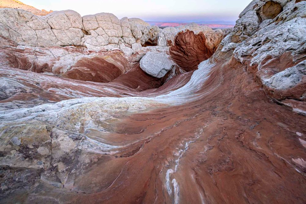 翌朝、日の出前にテントを出発して、再びホワイトポケットに行きました。 The next morning, we left our tent before sunrise and went back to White Pocket.