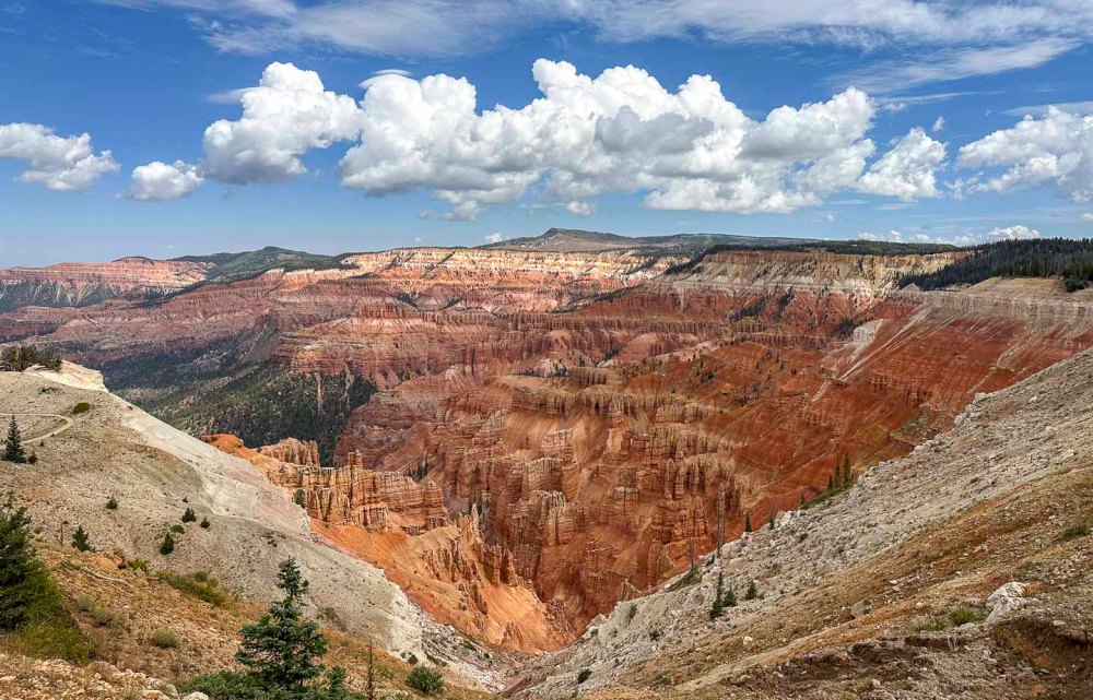 標高 10,000 フィート(3,000m) 以上、コロラド高原の西端に位置するのがシーダーブレイクス国定公園です。石灰化されたクラレン層で覆われています。 Cedar Breaks National Monument is located at an elevation of over 10,000 feet (3,000 meters) on the western edge of the Colorado Plateau. It is covered by the calcified Claron Formation.