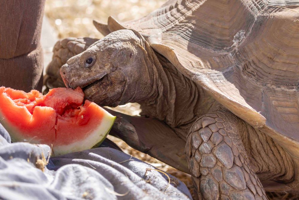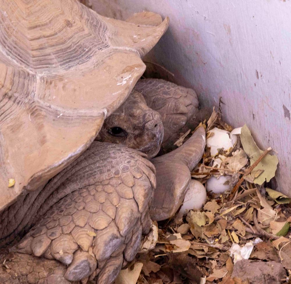 そして、もう1匹、忘れてはならないリクガメがいました。ケヅメリクガメというそうです。 And there was one more tortoise that I must not forget. It is an “African Spurred Tortoise.”