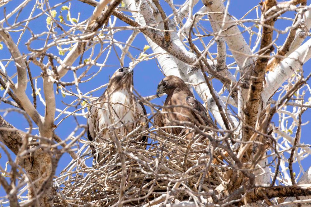 敷地内の木には鳥もたくさんいました。アカオノスリの夫婦が巣の上にいたので、これからの季節にそなえていたのでしょう。 There were also many birds in the trees on the property. A couple of red-tailed hawks were on their nest, probably preparing for the coming season.