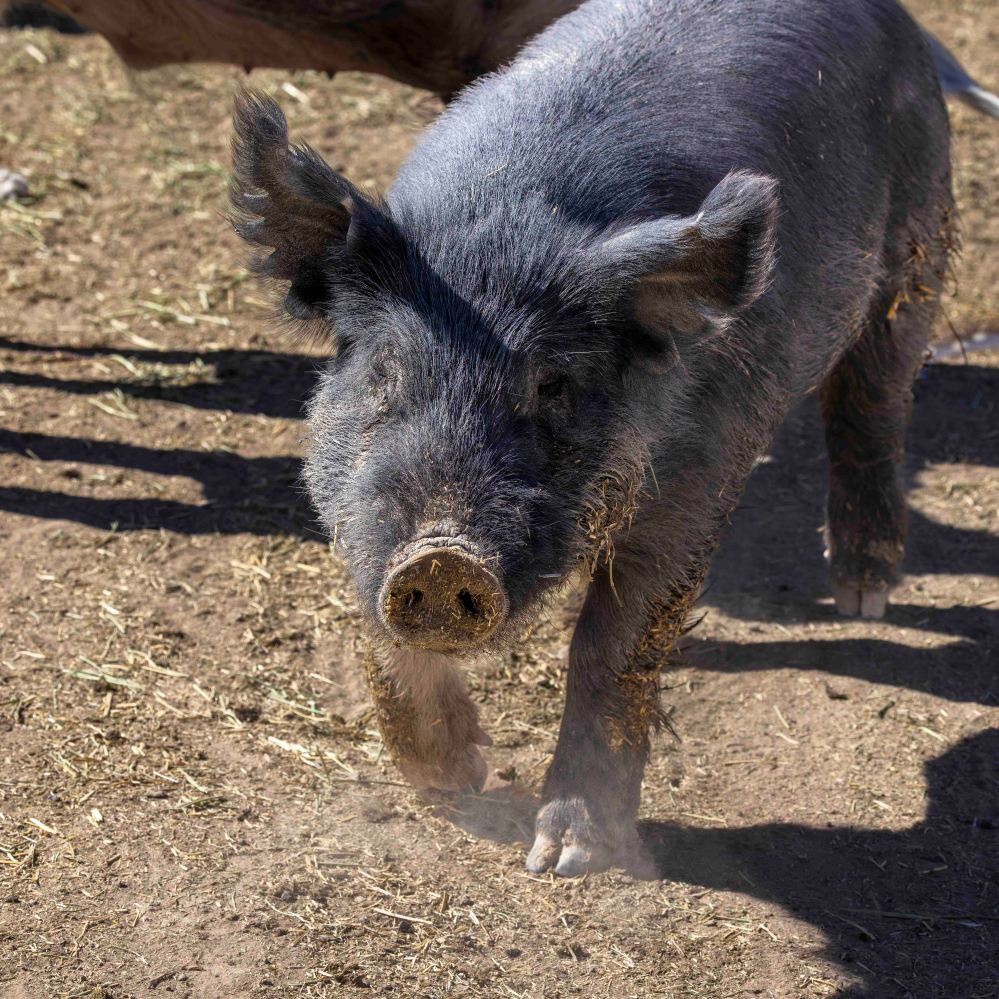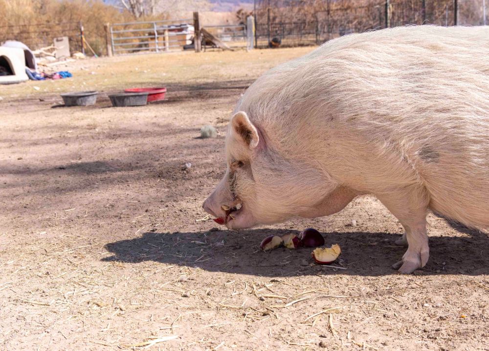 オーナーのジャニスさんにブタの数を聞いたら「最近数えてないけど、多分200頭ぐらいかな。」と、おっしゃっていました。 When I asked Janice, the owner, how many pigs she had, she said, “I haven’t counted them recently, but maybe 200.”