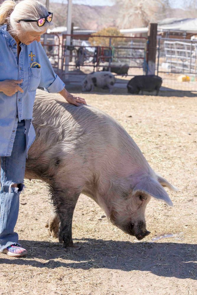 私は少し怖がって、2-3回撫でただけでしたが、ジャニスさんが降り注ぐ愛情の深さ、大きさに感動しました。 I was a little scared and only petted pigs 2-3 times, but I was impressed by the depth and magnitude of the love Janice showered down on them.