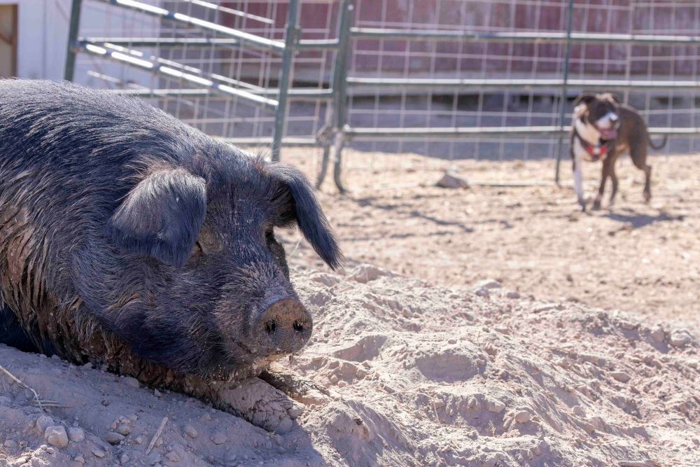 ブタはもちろん、犬、猫の数も半端ではありません。その他、ヤギ、七面鳥、エミューなどもいました。 The number of pigs, as well as dogs and cats, is beyond measure. Other animals include goats, turkeys, and an Emu.