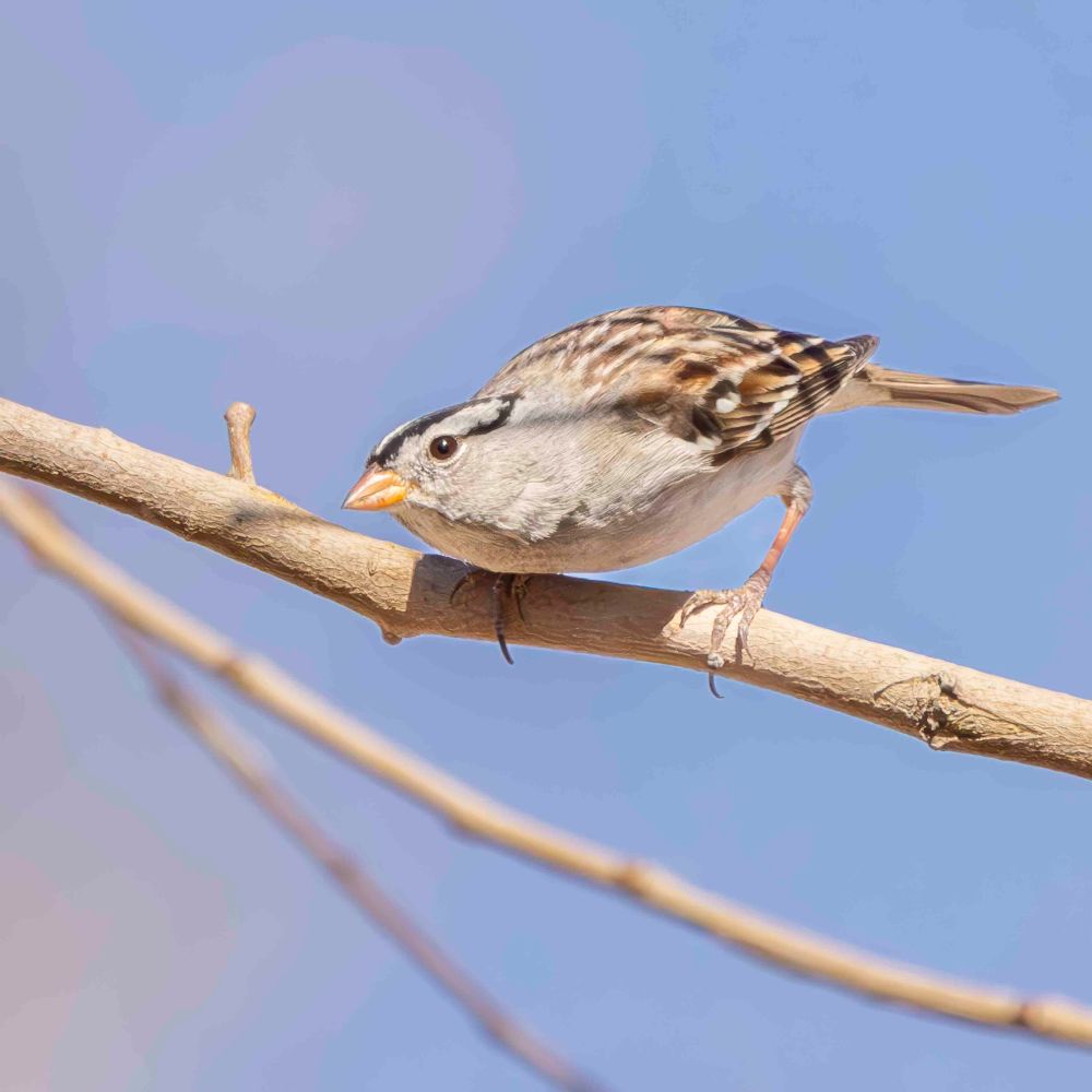 ミヤマシシドも群れをなして飛び回っていました。朝夕には地面が見えなくなるほどの大群がやってきて食事を楽しんでいるとのことでした。 White-crowned Sparrows were also flying around in flocks. We were told that in the morning and evening, such a large flock comes to the site that the ground is covered by them completely. They enjoy their meals for the day there.