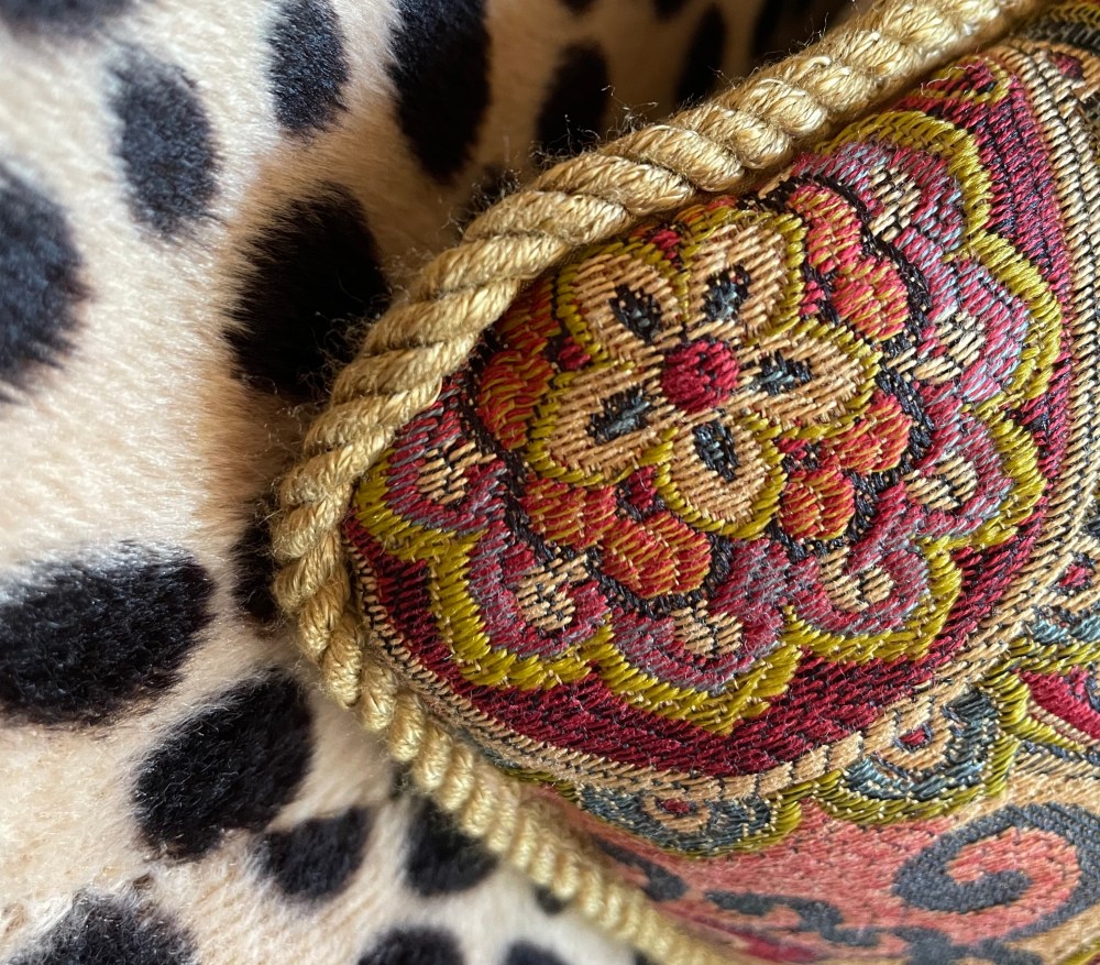 苦労した所は、コードを挟んで角を縫う所でしょうか。 The difficult thing was to sew the fabric together with the cord in-between. Especially at the corner, it was especially tough.
