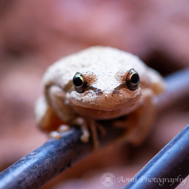 昨日突然ピョンと飛び出て来たアマガエル、Western Chorus Frogです。日本語名はわかりません。 – This is a Western Chorus Frog which hopped out suddenly yesterday to our house.