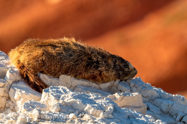 ここがマーモット家族の住むシーダーブレイクス国定公園の丘。マーモットたちはこうして暖かい陽を浴びて一日の最後を送るのでした。おしまい。- This is the hill where the marmot family lives in Cedar Breaks National Monument. They end each day in this way, enjoying the warmth from the last rays of the sun. The End.