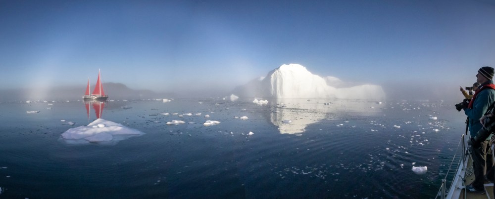 そして、何回も何回も氷山のアーチの向こうに船を配置して、ベストタイミングを待ちました。 And many, many, many times, we positioned the ship behind the arch of icebergs and waited for the best timing.
