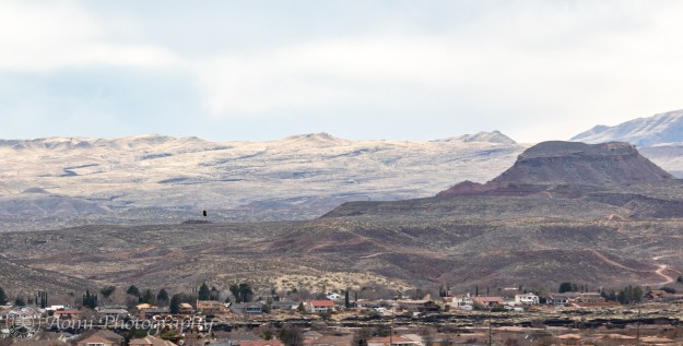春の嵐、風の強い日にワシを求めて出かけました。たどり着いた所はセイントジョージより硬度が高いので、まだ寒い。そして強風と曇り空、天候はよくありません。- On a strong windy day like a spring storm, we went out to look for eagles. The place we went to was much higher altitude than Saint George, so it’s still very cold. With strong wind and cloudy weather, it wasn’t a good day at all.
