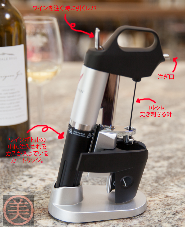 コルクを抜かなくてもワインを注ぐことができるギャジェットです。Chalk Hill で初めて拝見して衝撃の感動。つまり、ばんちゃんが「頭が痛いからワイン飲まない」って言っても、私一人でワインを楽しめるんです。ボトルを空けるわけではないので、美味しさをそのままキープできるんですね。