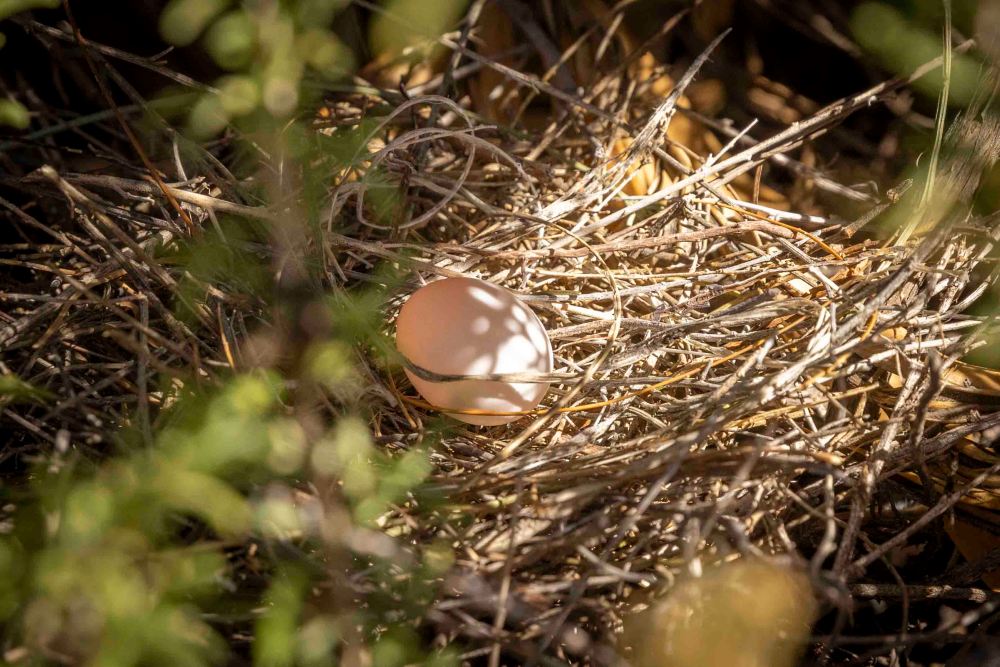 裏庭の一角、ローズマリーの低木の中、卵を1つ発見しました。長さ 2.5 cm (1 inches) ぐらいの小さな卵。 I found one egg in a rosemary shrub in a corner of our backyard. It was a small egg, about 2.5 cm (1 inch) long.