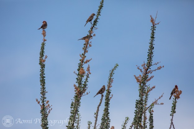 カリフォルニアに住んでいた時も裏庭でよく見かけたメキシコマシコです。様々な環境に適応できるたくましい鳥なんですね。 – These are House Finches which I often found in our backyard when we lived in California as well.  They are quite sturdy and can adapt themselves into variety of environments.