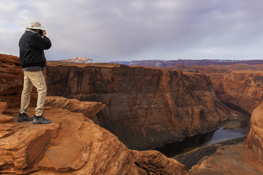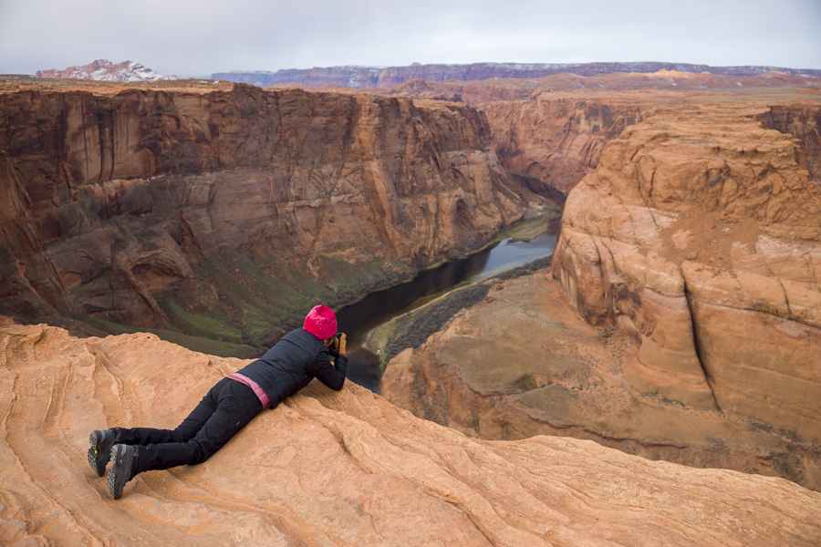 ペイジから少し南下した所に、コロラド川の馬蹄形をした場所が見下ろせる展望所があります。 The viewpoint of the Colorado river’s Horseshoe Bend was about 5 minutes south of Page.