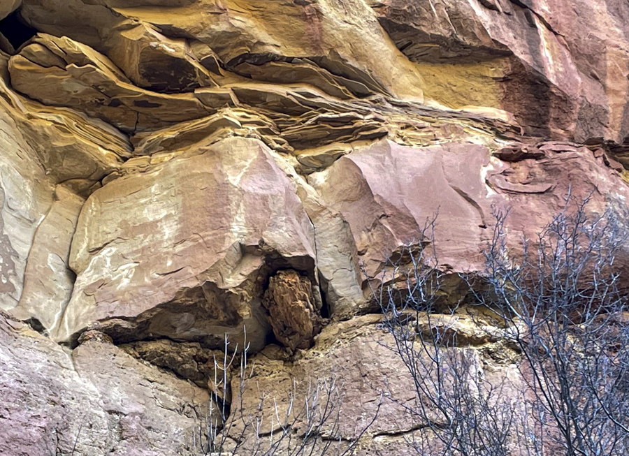 私たちの目指したものは、三畳紀の頃の化石化した木です。写真の質が悪いので見えにくいんですが、以下の写真中央に見えます。 Our goal was to get to a place known as the petrified log jam in sediments from the Triassic period. The pictures below aren’t good quality and not so well captured but you can see them at the center of the pictures.