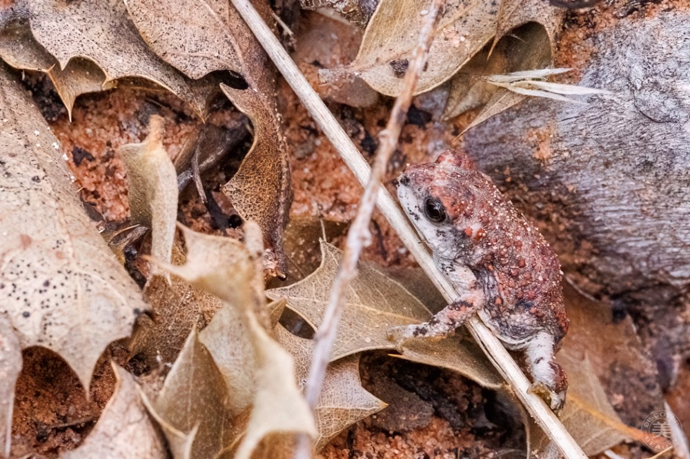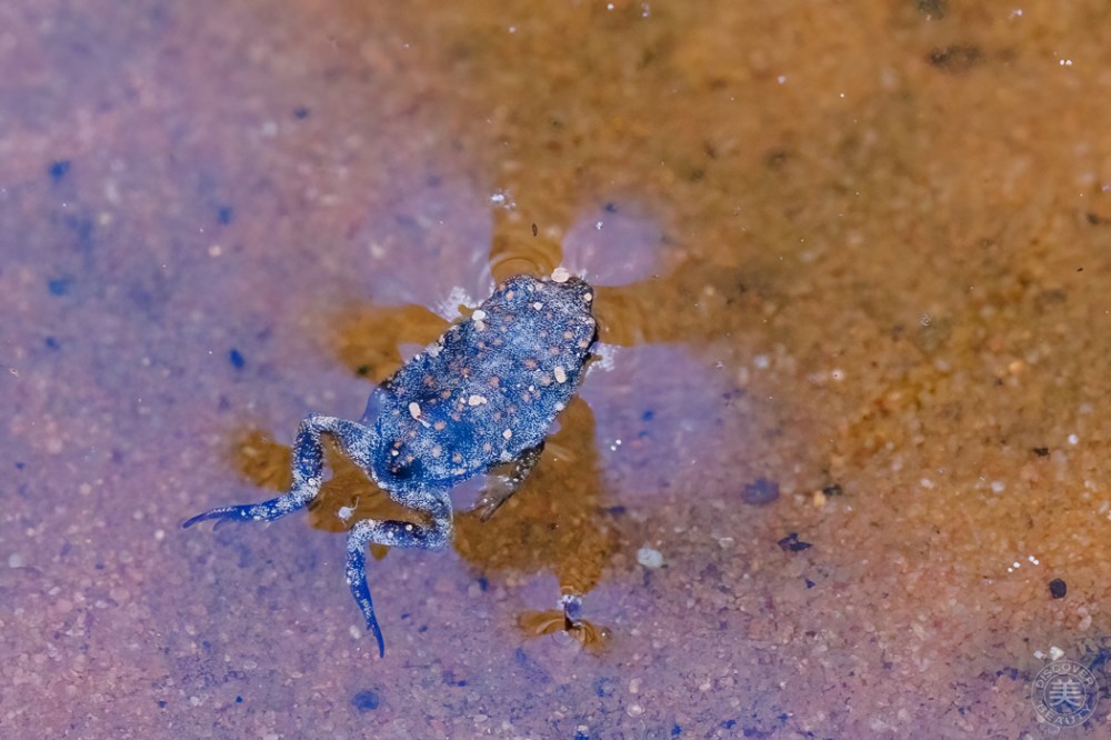 2cmぐらいの小さなヒキガエルです。多分、まだ陸に上がってきたばかりです。 It is a small toad, about 1 inch. It has probably just come ashore.
