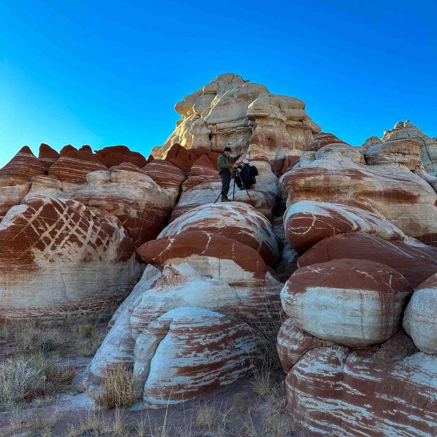 アリゾナ州のTuba Cityを拠点にして、ナバホ族の居留地に入らせてもらいました。日程はかなり強行軍で、日の出ショットを撮るために、朝4時に起きて昼前に帰ってくる。日の入りショットを撮るために、午後3時ごろに出かけて7時過ぎに帰ってくるというルーティンの毎日。 We were based in Tuba City, Arizona, and were allowed to enter the Navajo reservation. The itinerary was pretty intense: to get sunrise shots, we would get up at 4:00 AM and return before noon. To get sunset shots, we would go out around 3:00 PM and return after 7:00 PM.
