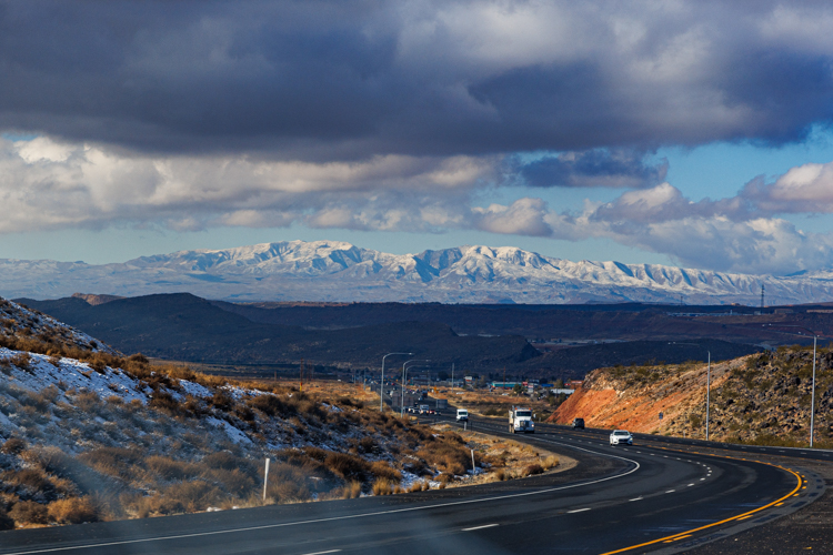 帰途、遠くに見えたビーバーダムマウンテンにも雪が積もっていました。美しい景色は見るだけで幸せ度をグンとあげてくれるんですね。 On the way back home from the road, we saw the snow covered Beaver Dam mountains. It is very true for me that my happiness gauge goes up so high when seeing beautiful views like this.