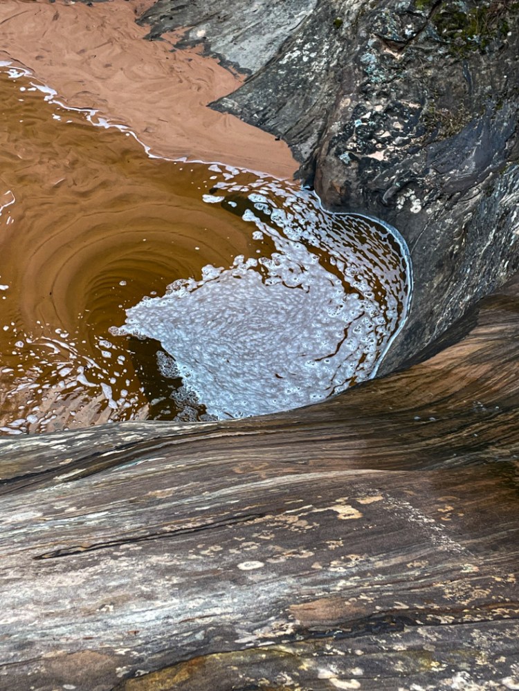 最近の嵐で水が流れ、水溜りが沢山できていました。 Because of the recent storms, many pools were created.