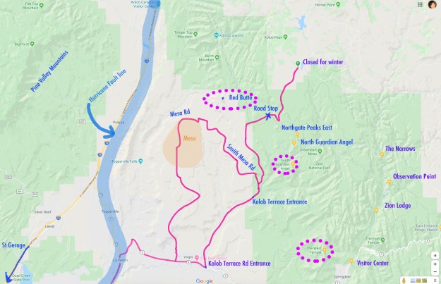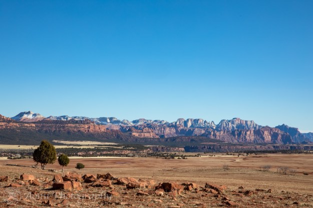 その後、バージンの街まで戻り、そこからコロブテラスに向かう道を北上しました。 We waited for 1.5 hours in the line, but made a U-turn back to the town of Vergin, then went up north on North Kolob road.